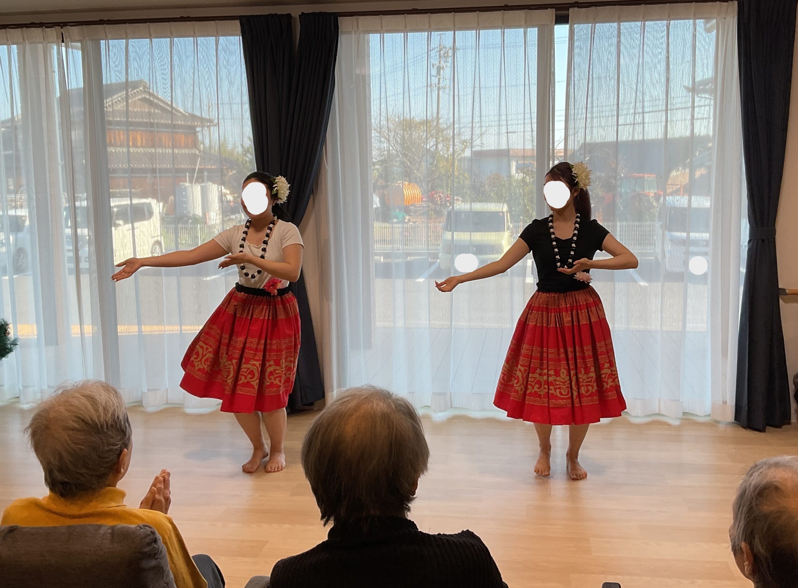 学生さんによるフラダンス🌺 2026 1/16 スタッフブログ こんにちは。和らぎ水沢です!学生さんにフラダンスをしに来ていただきました😊 皆さんとても喜ばれていました!素敵なフラダンスをありがとうございました😁😁 スタッフブログ URLをコピーしました! 夜間想定!避難訓練!🔥 有志バンド演奏会🎸🎤 関連記事 クリスマスイブ🎄🍰 2025年12月24日 冬のコンサート🎹 2025年12月19日 有志バンド演奏会🎸🎤 2025年12月7日 夜間想定!避難訓練!🔥 2025年11月27日 ハーモニカ&元気体操🔥 2025年10月14日 敬老の日 お祝い行事㊗️ 2025年9月15日 諏訪太鼓🥁 2025年8月2日 コンサート&レク体操🎼 2025年7月31日