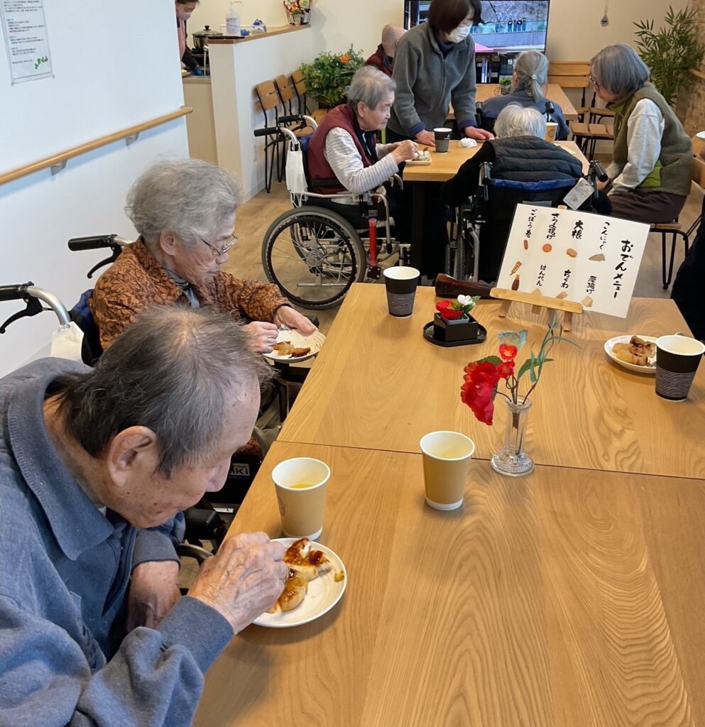 おでん屋台開店🍢🍵 2026 4/09 スタッフブログ こんにちは。和らぎ水沢です。この度利用者様の家族様に協力していただき、2階地域交流室にておでん屋を開催いたしました😄 皆様、味噌やからしなどをお好みで付けられ、たくさん召し上がってくださいました🙌 また開催できるといいですね!😊 スタッフブログ URLをコピーしました! お正月🎍🐎 春のスイーツ喫茶🍹 関連記事 プアピリアロハ🌴 2026年4月1日 喫茶和らぎ☕ 2026年3月18日 春のスイーツ喫茶🍹 2026年3月6日 お正月🎍🐎 2026年1月1日 クリスマスイブ🎄🍰 2025年12月24日 冬のコンサート🎹 2025年12月19日 有志バンド演奏会🎸🎤 2025年12月7日 学生さんによるフラダンス🌺 2025年11月30日